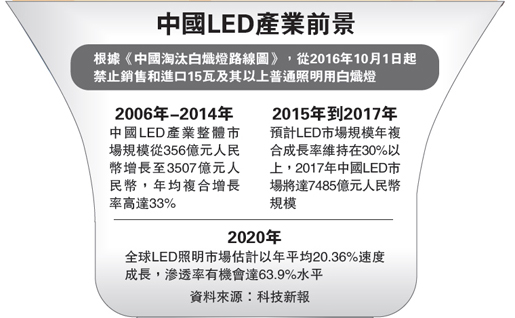 德國照明巨擘歐司朗1995年中國成立全新合資企業“歐司朗佛山照明有限公司”,公司是歐司朗在中國最大製造與推廣基地,坐落在廣東省佛山和南海市交界,佔地7.8萬平方米,擁大批中德資深光源專家和現代化生產設備,其產品遍布內地30個省、市、自治區。公開資料顯示,2015年中國LED封裝市場規模為88億美元(約686億港元),其中用于照明的LED市場規模為39億美元(約304億港元),歐司朗受益于車用與紅外線LED市場排第五。