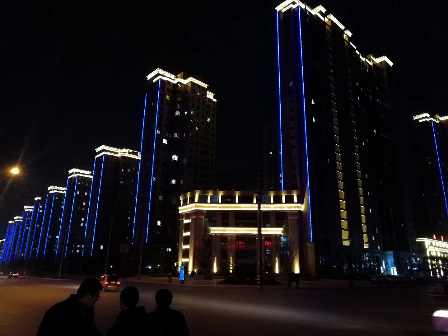 建筑物照明設計是利用燈光體現建筑寓意及功能,增強其表演力的主要手段,能為人們提供良好的環境,“和家園”項目整體構思以突出建筑物整體形象為主,重點突出樓體頂部,蜿蜒有序的層次感,以黃光為主,給人以溫暖舒服的視覺效果,側面以線條燈做點綴,更加協調一致。